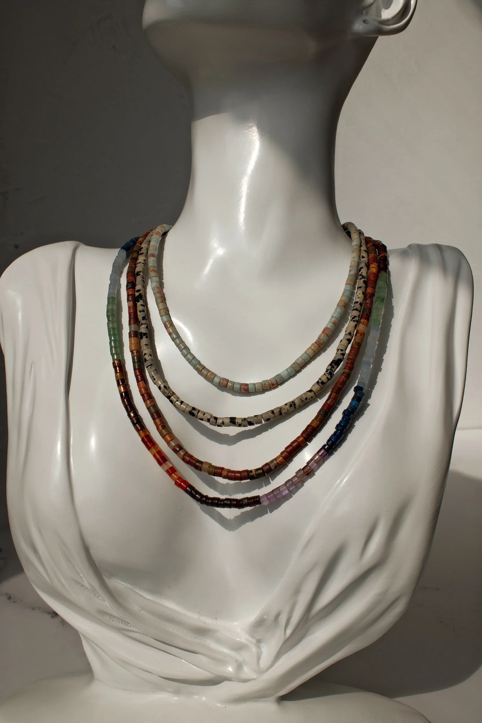 Exquisite natural stones, each bead strung individually by hand, the best of human design and durability combined